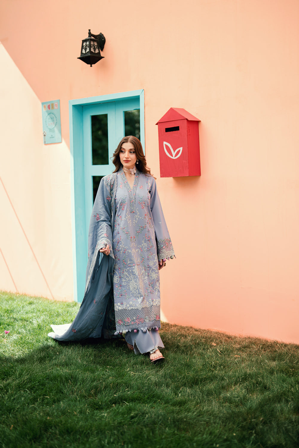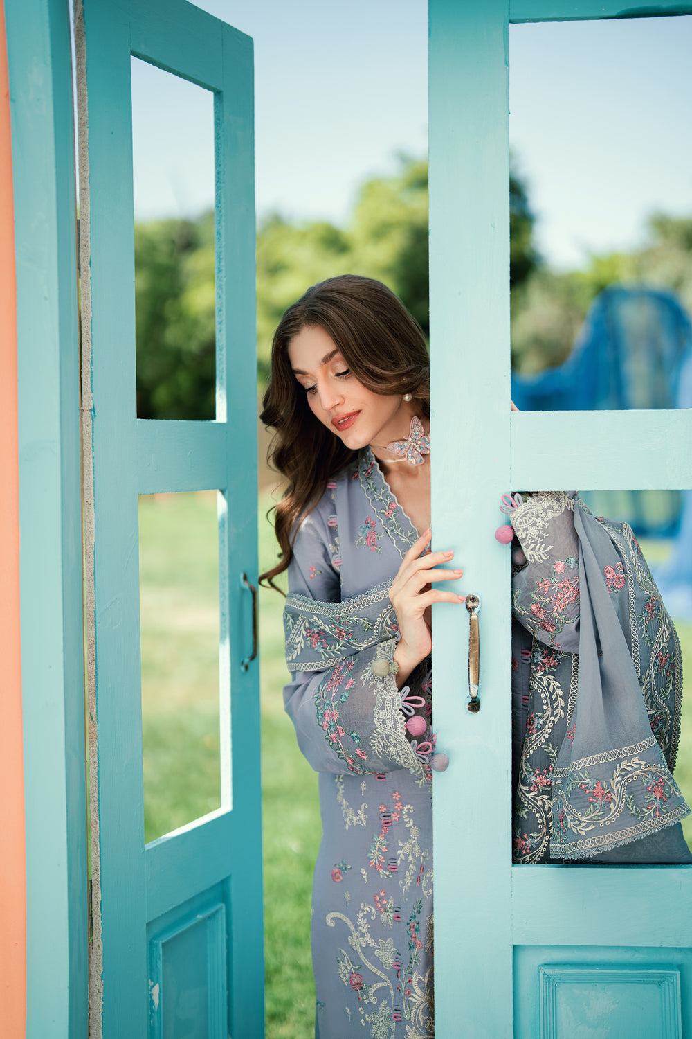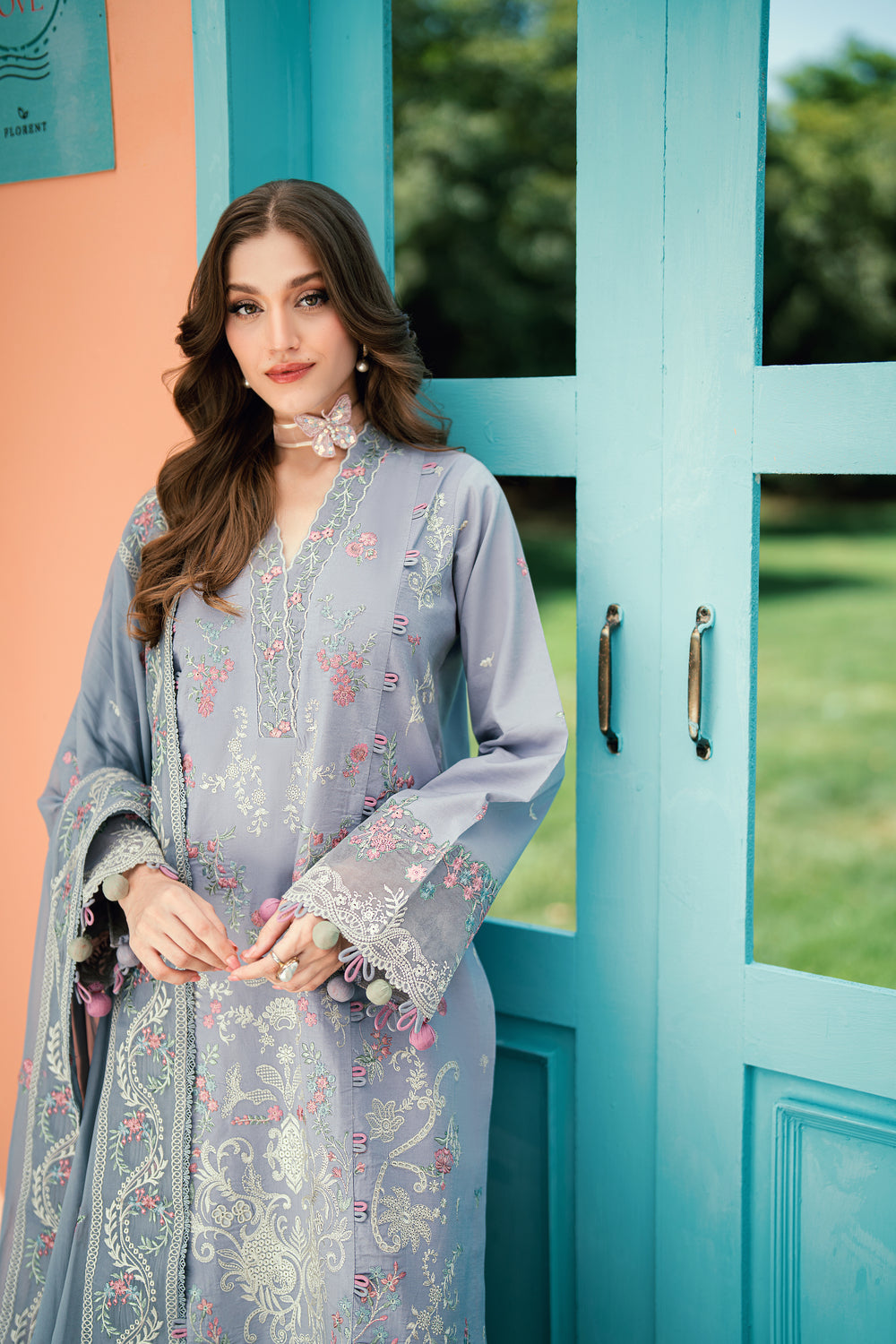 Dyed Lawn Embroidered Back