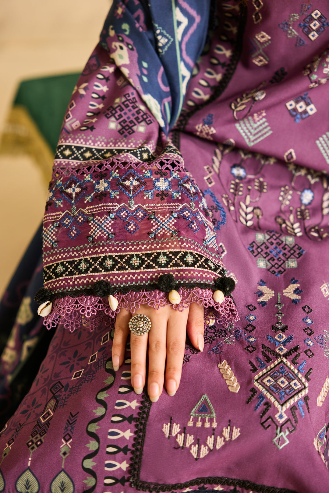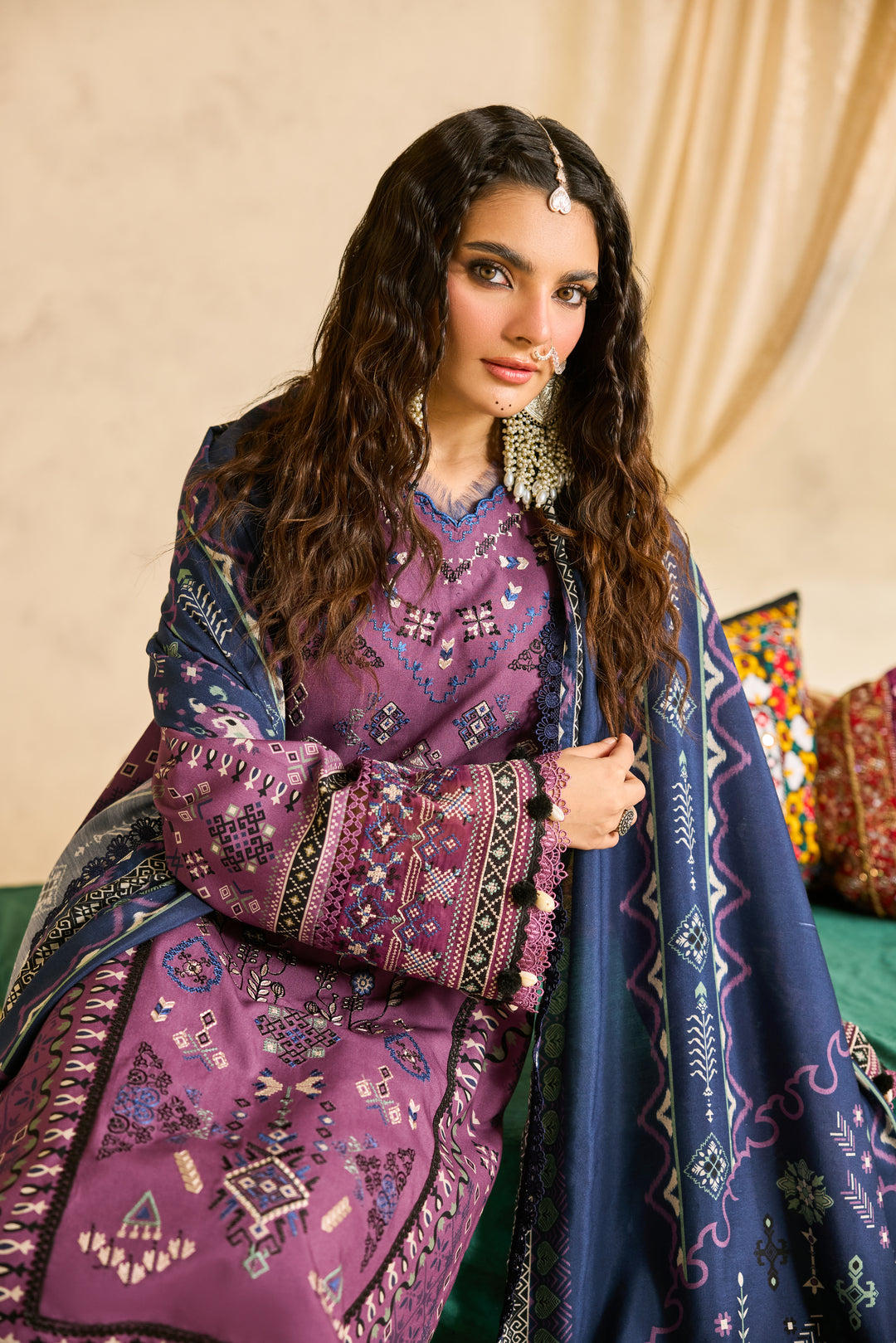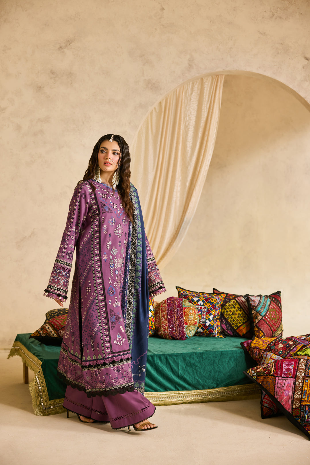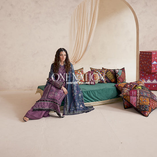 Digital Printed Embroidered Front 1.20Digital Printed Back & Sleeves 1.85Embroidered Border for Sleeves 1 YardDigital Printed Khadi Shawl 2.5 MtrDyed Trouser 2.5 Mtr