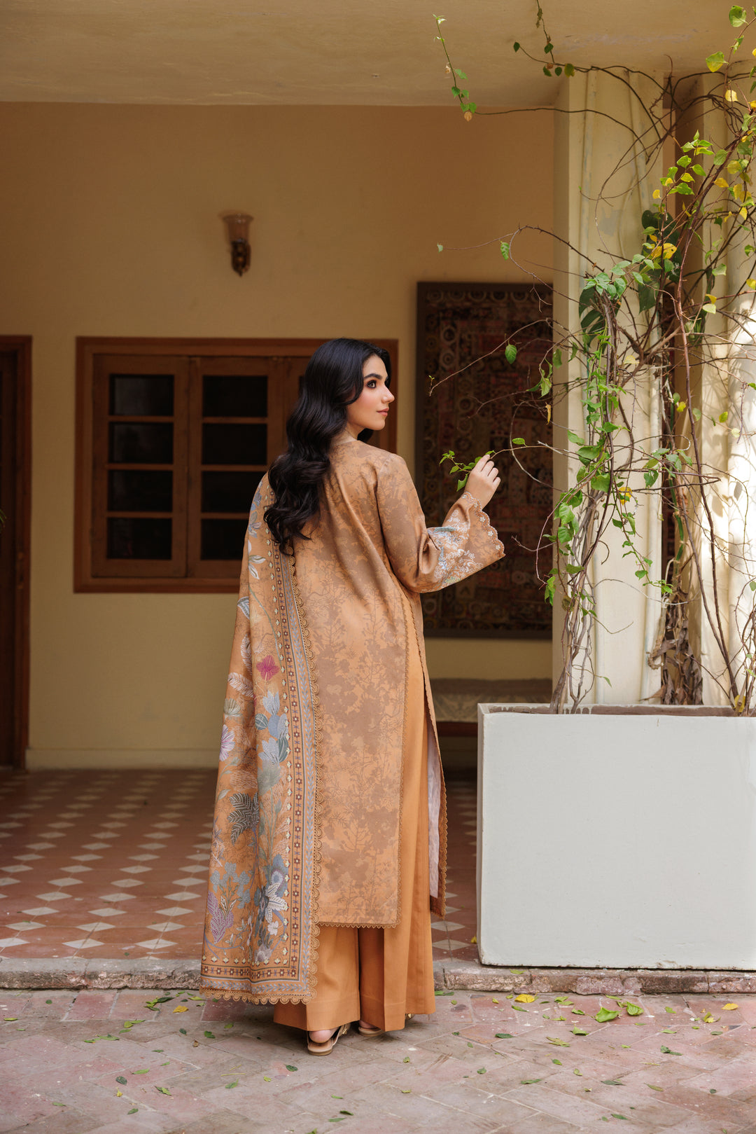 Digital Printed Embroidered Front 1.20Digital Printed Back & Sleeves 1.85Embroidered Border for Neckline & SleevesDigital Printed Wool Shawl 2.5 MtrDyed Trouser 2.5 Mtr
