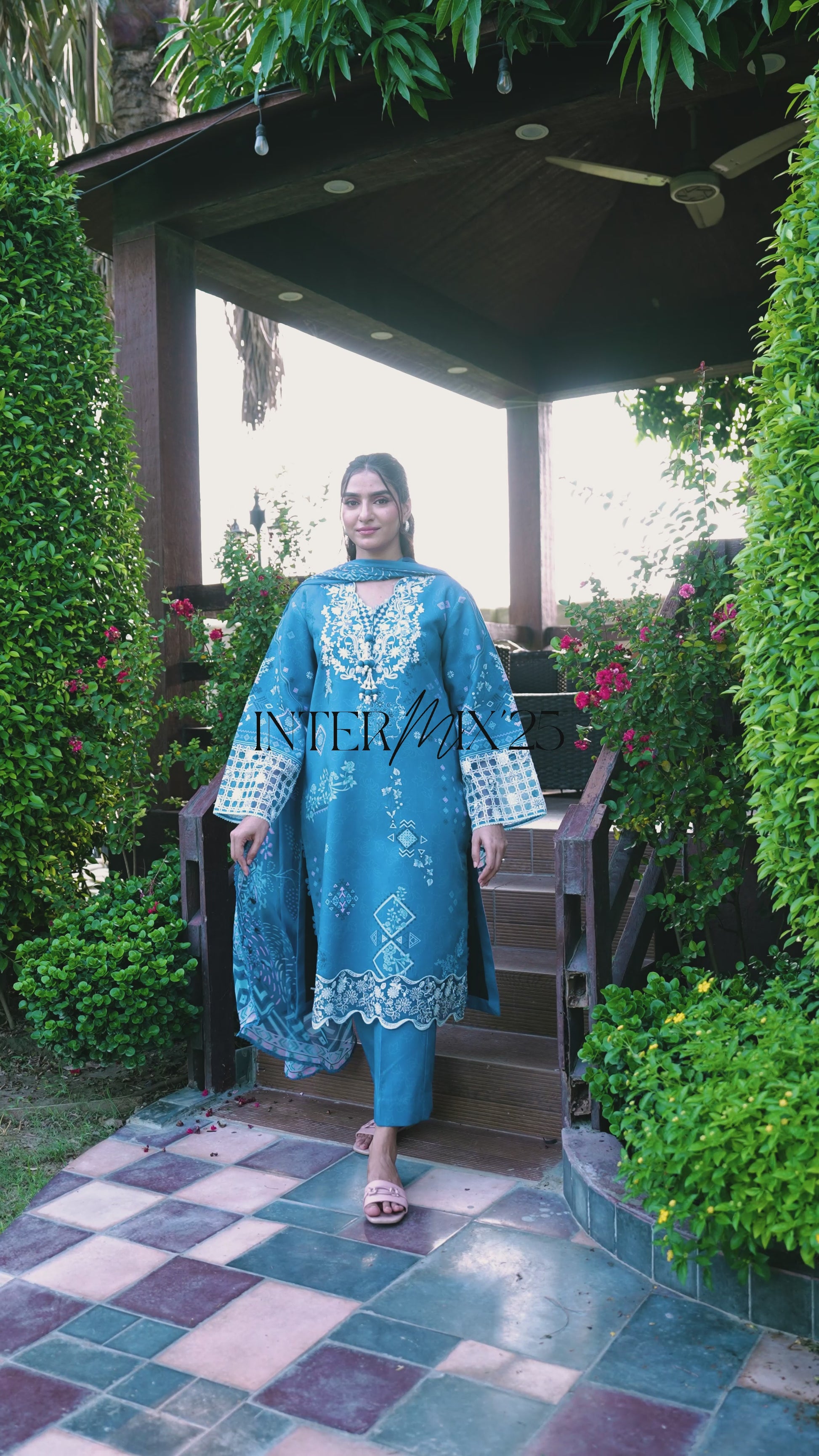 Digital Printed Embroidered Viscose Front 1.25 Mtr