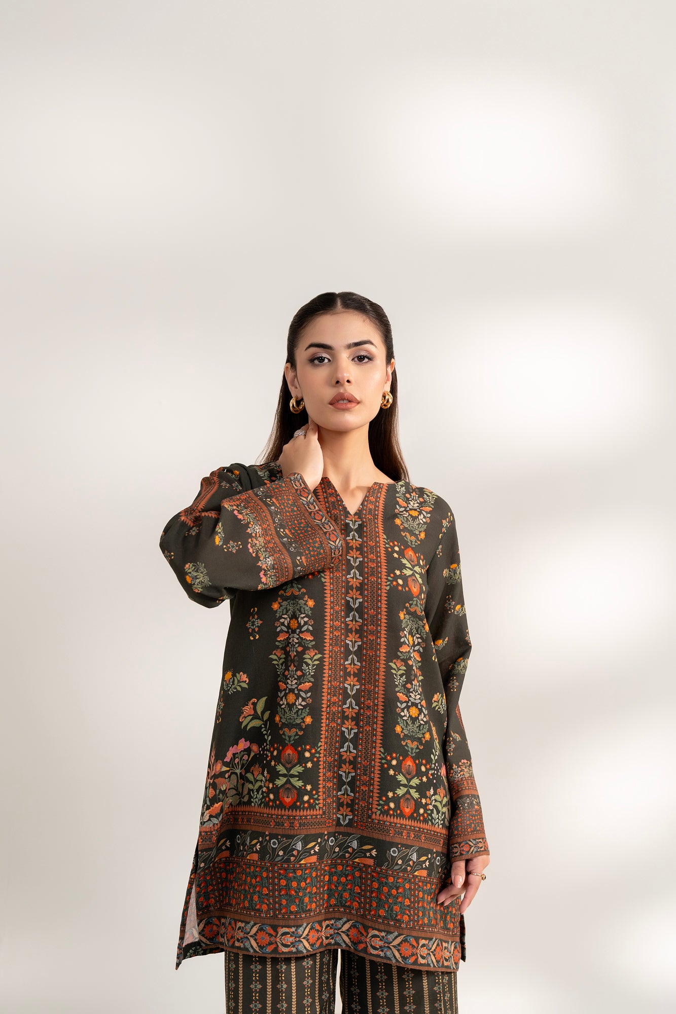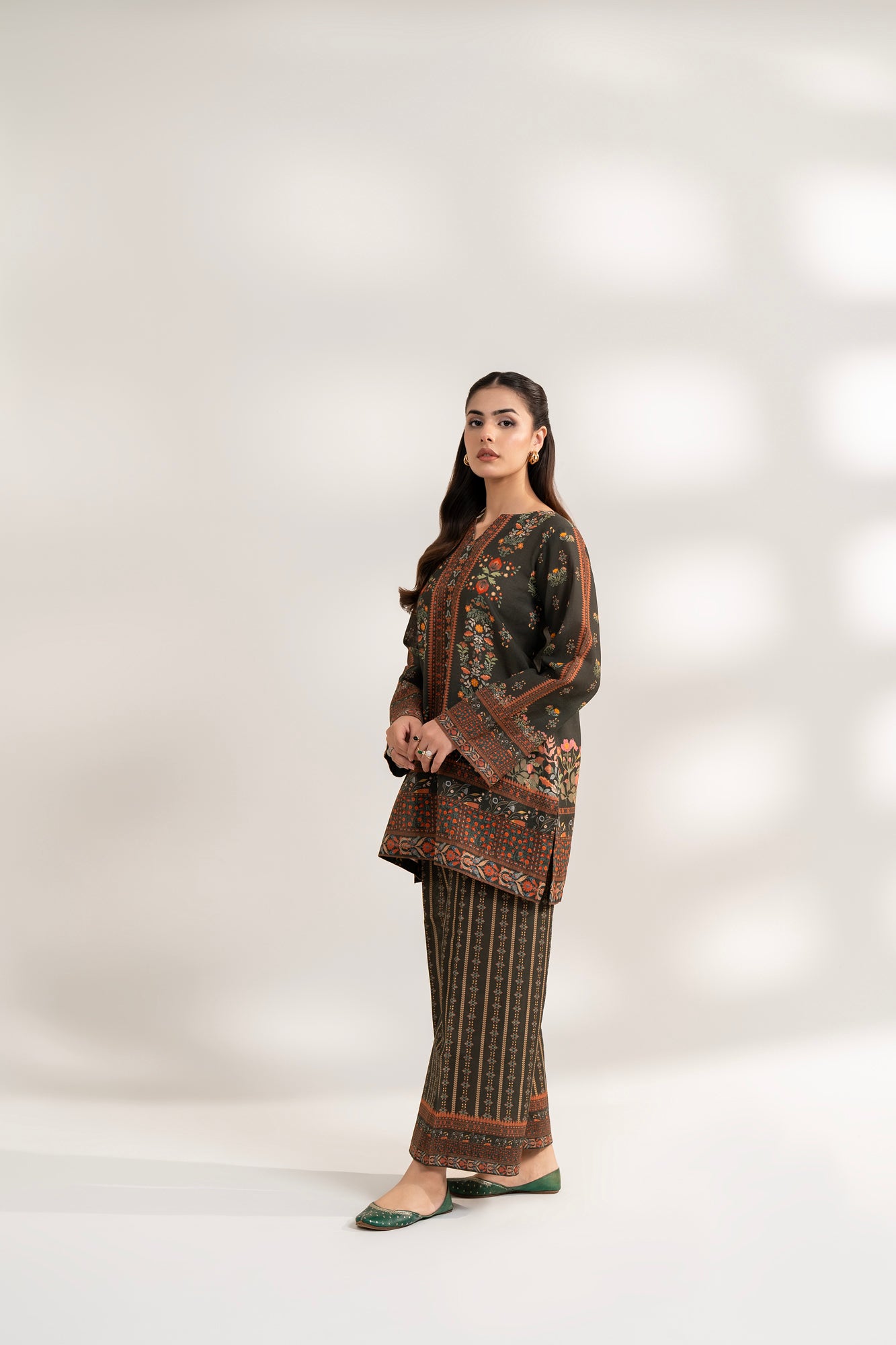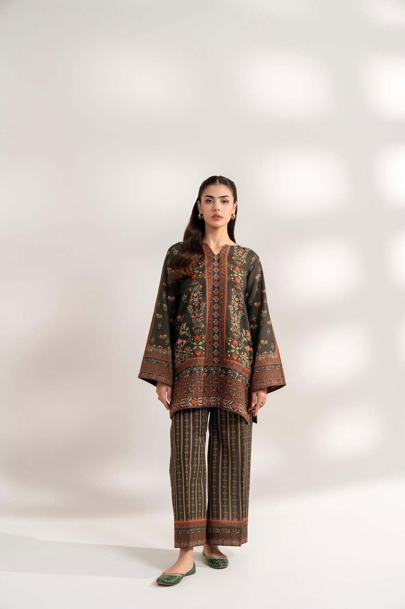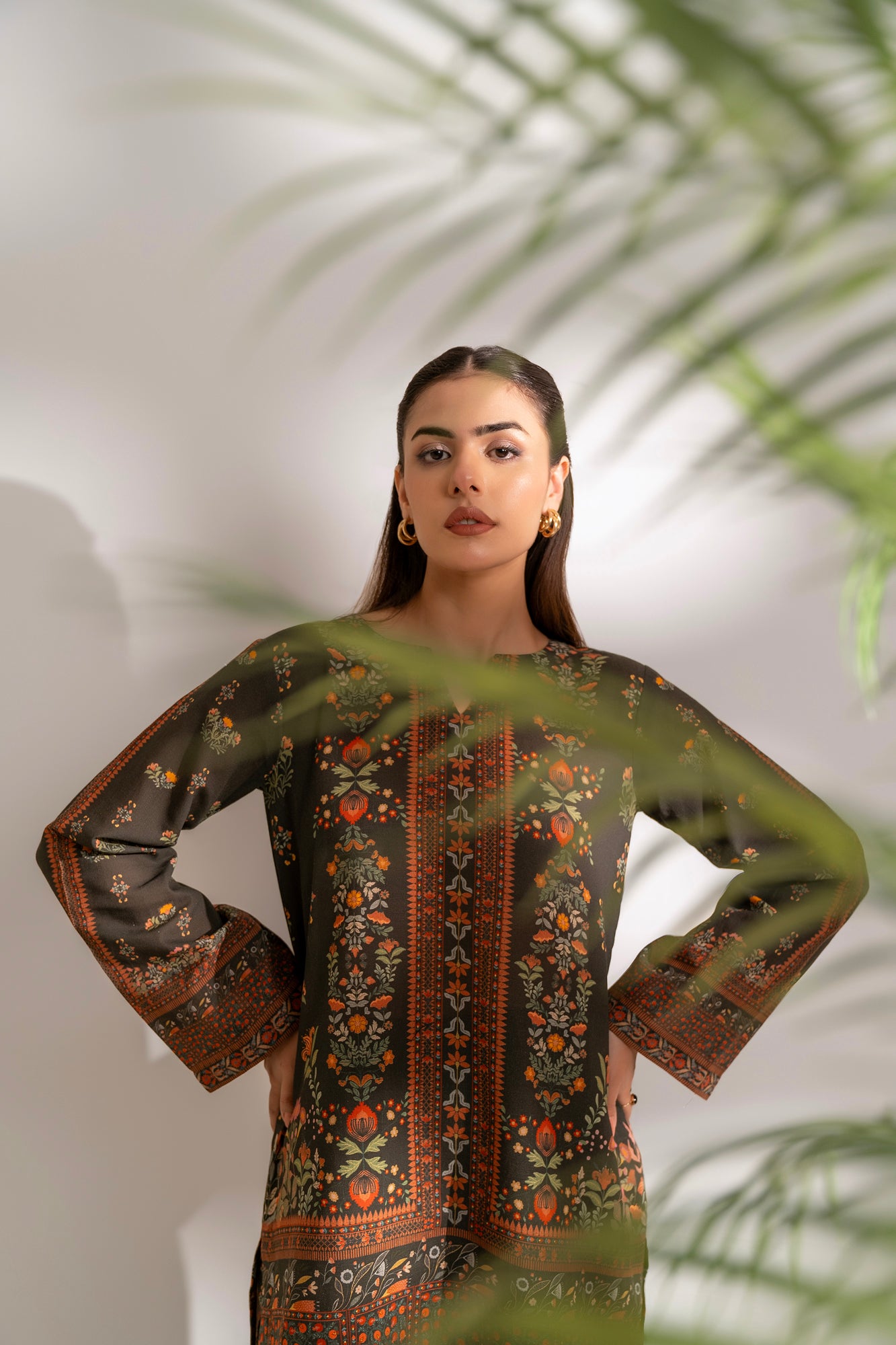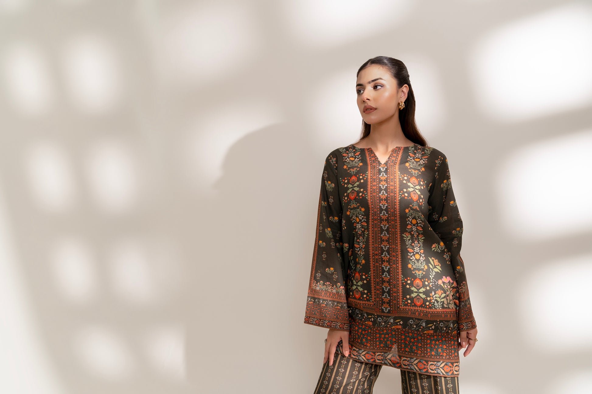 A beautiful earthy tone short shirt with a array of delicate printed flowers and, paired with a printed straight trouser. This ensemble is perfect for day out with your girls.